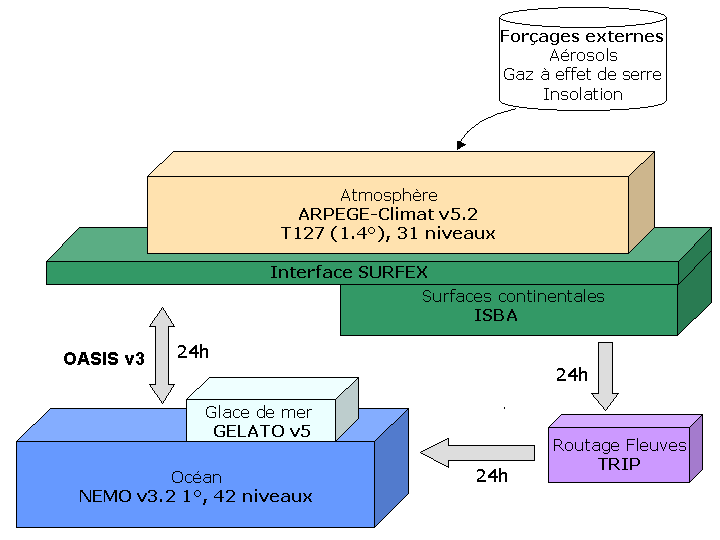 - GELATO pour la glace de mer, modèle développé au CNRM-GAME (Salas-Mélia, 2002)